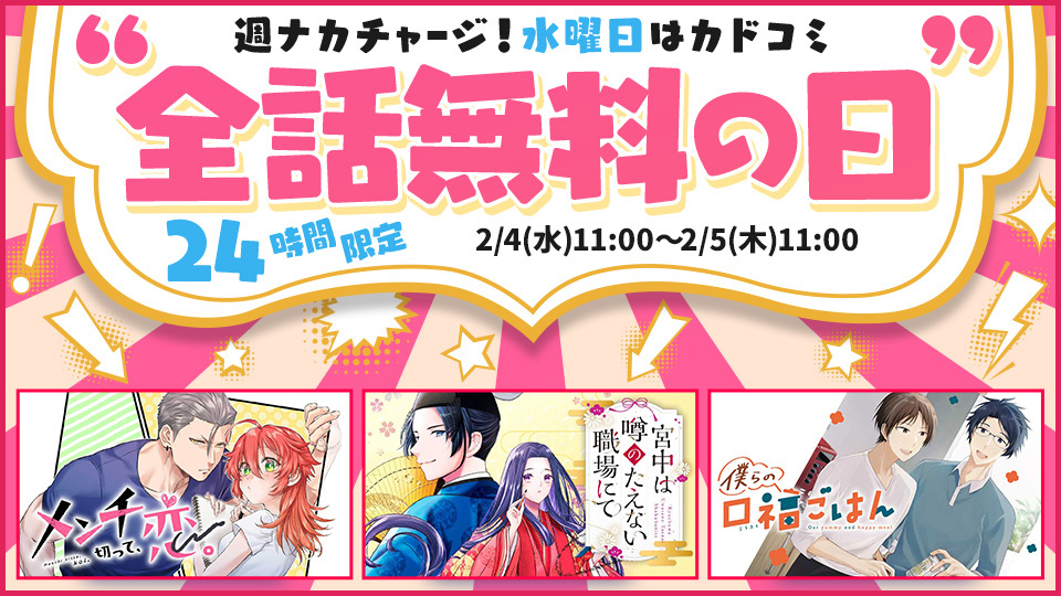 水曜日はカドコミ全話無料の日!!【第15弾】お知らせ - 2026/02/04