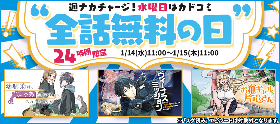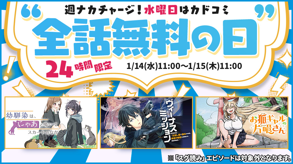 水曜日はカドコミ全話無料の日!!【第12弾】お知らせ - 2026/01/14