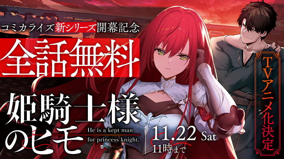 コミカライズ新シリーズ開幕記念!『姫騎士様のヒモ』全話無料‼お知らせ - 2025/11/06