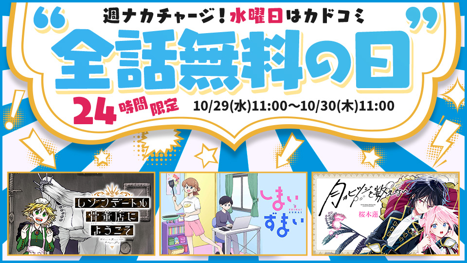水曜日はカドコミ全話無料の日!!【第2弾】お知らせ - 2025/10/29
