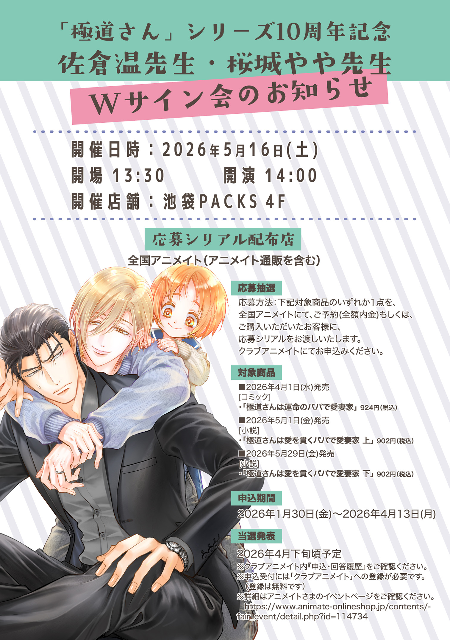 「極道さん」シリーズ10周年記念 佐倉温先生・桜城やや先生 Wサイン会のお知らせ